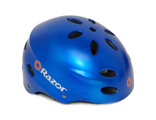 The perfect choice for biking, skating, or any other sport that requires protective headgear, the Razor Aggressive helmet increases your child's safety with its multi-impact liner, extended rear coverage, and ergonomic, classically-designed shape. It fits youth head sizes 21.5 to 23 inches (ages 5 and older), and is ideal for street use or half pipe action. Eleven vents will keep active skaters' and bikers' heads cool at all times and the side release buckles make it a breeze to adjust and fasten the chin strap.