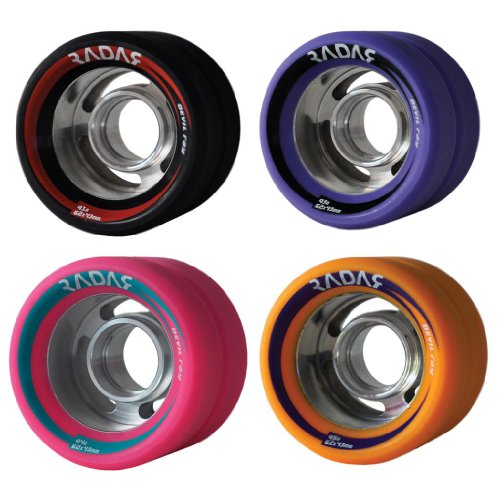Radar Devil Ray Indoor Quad Roller Skate Wheels by Riedell - Your Choice of Wheel Colors/Hardnesses - The Radar Devil Ray features a 3-spoke slotted hub which is the lightest aluminum hub available. Serious skaters prefer aluminum hubs because they don't flex, which allows the each finely tuned urethane "tire" compound to perform exactly as it was designed. The lip is slightly rounded for extra smooth pushes.