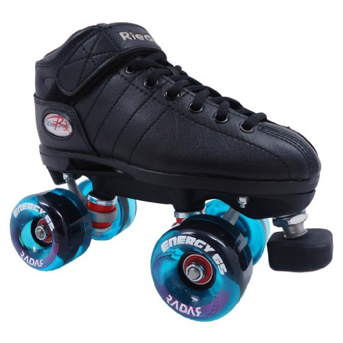 Riedell R3 Energy Aqua Outdoor Skates - R3 Black Skates with Clear Aqua Radar Energy 78A Outdoor Wheels - Check out the brand new awesome outdoor roller skate setup from Riedell skates. The Riedell R3 Energy speed skate offers the most popular roller skate on the market today and pairs that with the newest and most trusted Radar outdoor wheels available today - the Radar Energy 78A outdoor wheels! Radar Energy wheels are super popular and offer great rolling action outdoors! Whether you are looking for the perfect recreational outdoor roller skate or you are an outdoor roller derby player in need of the perfect pair of outdoor roller derby skates, the Riedell R3 Energy has everything you need and more than you would expect in an outdoor speed skate so grab yours now before this package is gone! - SIZING: These skates come in Men's sizes only. Ladies, please select one size down from your normal shoe size for the equivalent fit. For example; A Men's 7 equals a Ladies 8. Remember, since the skates are in Men's sizes, the men's size you select will be shipped out to you. For example; If you select a Mens 7/Ladies 8 when placing your order, a size 7 will be shipped to you. Sizes 1-3 are Unisex Kids sizes.