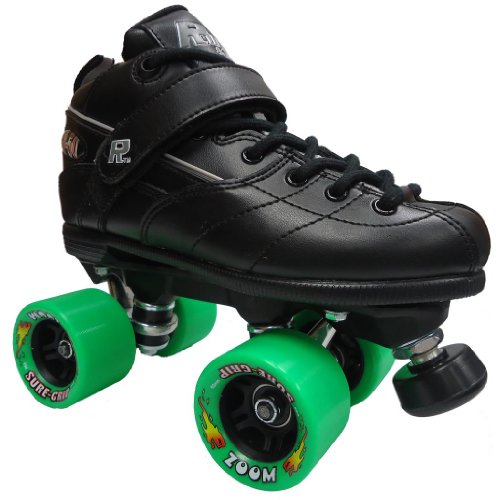 Rock GT50 Zoom Green Speed Skates - Black Quad Roller Derby Skates - This brand new custom speed skate from Sure Grip, the Rock GT50 Zoom roller skate is perfect for indoor speed skating or roller derby fresh meat. This skate features an upgraded ABEC-5 bearing with Sure Grip Zoom indoor colored wheels. This skate is unmatched in comfort and affordability. These skates are in Mens Sizes. Ladies, please go down one size for the proper fit. For example: A Mens 7 = Ladies 8. Below size 4 are unisex kids sizes.