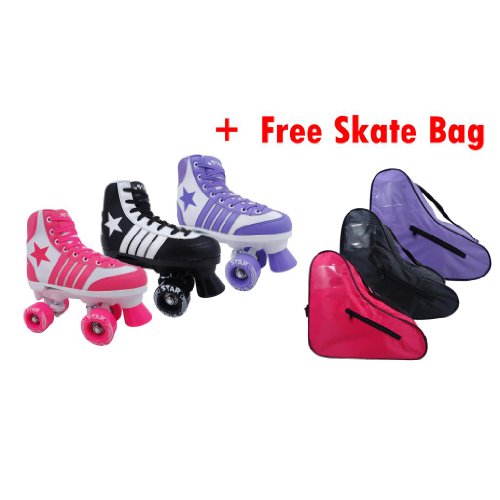 Epic Star Kids Beginner Quad Indoor/Outdoor Roller Skates - INCLUDES FREE SKATE BAG!!! Your Choice of Skate Colors! (The skate bag you receive will match the skate color you select)- SIZING: These skates come in unisex kids sizes and run true to your normal shoe size.