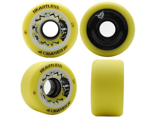 Heartless Chaser Wheels - 92A Yellow - Roller Derby Skate Wheels - Heartless Wheels is the only wheel brand 100% designed, focused, and dedicated to the agility minded skater. Heartless Wheels feature a true hollow core hub (cap and core) and 35mm narrow profile tire, which allows skaters to turn, juke, jump, and cut with unbelievable ease. We strictly focus on those roller derby skaters who look to gain the most agility and maneuverability possible. Heartless Wheels come in 6 hardnesses to give you the best options for your style of skating and the surfaces you skate on.