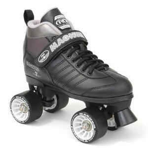 The Roller Derby Magnum men's roller skate is crafted around a speed profile boot with a padded collar and lining and reinforced ankle support. It's set-up with aluminum trucks, ABEC 5 bearings, and 64-mm Race design mag core wheels. The reinforced nylon chassis with aluminum trucks and double action cushions provide a smooth ride. Features: Lace and power strap closure. Lining Material: Soft Comfort, Skate Type: Speed Skates, Wheel Configuration: 64mm/64mm - 64mm/64mm, Bearing Type: ABEC 5, Frame Material: Composite, Skill Range: Beginner - Intermediate, Model Year: 2011, Product ID: 121039, Shipping Exclusion: This item is only available for shipment by UPS to the lower 48 United States. APO, FPO, PO BOX, Hawaii, and Alaska shipments may not be possible for this item. (Please call prior to purchase.), Special Order: This is a Special Order item, will be shipped from the manufacturer, and is not stocked in our warehouse. All Returns/Exchanges are subject to a 20% restocking fee. This item does not qualify for our Price Matching Policy. Order processing time may vary., Sizing Information: This skate is sized in a Mens cut. Women should purchase one size smaller than their shoe size.