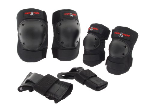 Triple Eight Saver Series 3-Pack Pads - Triple 8 Skate Protective Gear for Roller Derby Skating & Skateboard Protection - Triple Eight's Kneesaver Knee Pads, Elbowsaver Elbow Pads and Wristsaver Wrist Guards, packaged together in a convenient 3-pack. The knee pads and elbow pads are made of high grade durable fabrics, EVA foam padding, and polycarbonate full coverage caps to provide superior protection without restricting movement. The wrist guards offer great support and protection with high density impact-resistant molded ABS splints on front and back of wrists for support. This 3-pack is ideal for inline skating (roller blading), and all roller sports, and a great, convenient way to have all the necessary protective gear.