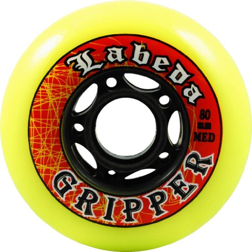 Labeda Gripper Yellow Inline Skate Wheels - Yellow 59, 68, 72, 76, 80 - Labeda Gripper Inline Skate Wheels 8-Pack Color Yellow Medium Choice of Sizes 59mm 68mm 72mm 76mm or 80mm Replacements for Roller Hockey Skating Skaters - The name that began a legacy... The first wheel to bring flex technology to the forefront of roller hockey. Its smaller core design allows the outer urethane to flex, maximizing grip with its larger footprint. (Available in X-Soft, Soft 80, 76, 72, 68 & 59mm Plastic tile surfaces and Medium 80, 76 and 72mm for smooth outdoor and roll on coated floors