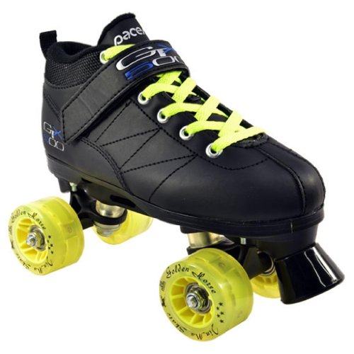 Pacer Mach-5 GTX500 Black Speed Skates with 8 Yellow Multicolor Light Up Wheels - Check out the brand new Pacer Mach-5 GTX500 Light Up Skate! All 8 Wheels Light Up - Not just the 4 on the Outside Like other Brands and NO Batteries Required - Get Noticed for Real !! The Pacer Mach-5 GTX500 Light Up speed skate is a great entry level quad speed skate for all types of skaters. These roller skates are excellent for recreation, exercise, and they're also available in Kids sizes! Your kids will definitely appreciate a hot set of these brand new Pacer Mach-5 GTX500 Light Up Skates as a Christmas or birthday gift or even just because! - SIZING: These skates come in Men's sizes only. Ladies, please select one size down from your normal shoe size for the equivalent fit. For example; A Men's 7 equals a Ladies 8. Remember, since the skates are in Men's sizes, the men's size you select will be shipped out to you. For example; If you select a Mens 7/Ladies 8 when placing your order, a size 7 will be shipped to you. Sizes 1-3 are Unisex Kids sizes.