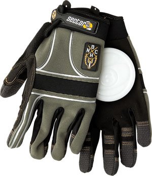 Sector 9 BHNC Slide Gloves - Delrin Pucks for smooth slide and speed control. Neoprene comfort knuckle panel and cuff. Reflective print on top panels. 3mm Anti-vibration foam under palm puck velcro. Sonic weld patch and strap detailing. Extra strength twin needle at stress areas and palm velcro.
