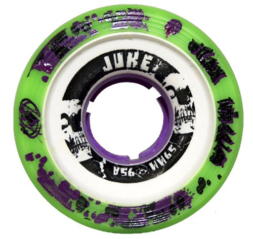 Atom Juke 95A Wheels - Juke 2.0 Purple Wheels - Atom Juke Slim Wheels - Say hello to all new Juke 2.0 for the 2011 season! Juke 2.0 sports lime green urethane wrapped around our glass-filled nylon hollow core hub. - Perfect for: Grippy Wood Floor, Grippy Sport Court, Concrete W/ Plastic