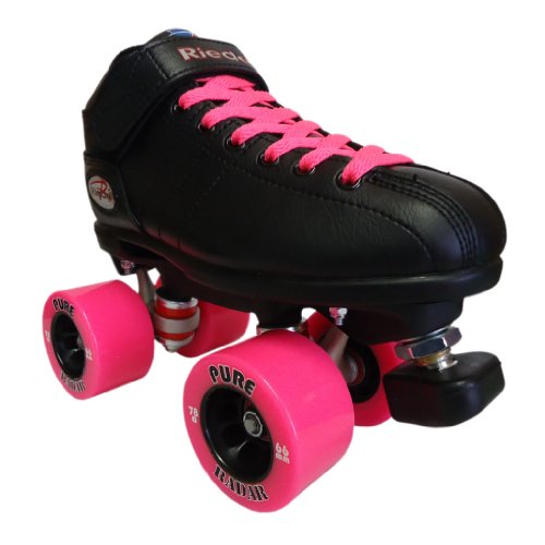 Riedell R3 Pure Outdoor Roller Derby Skates - Black Boots with Pink Outdoor 78A Radar Pure Wheels and Pink Laces - Check out the brand new awesome outdoor roller skate setup from Riedell skates. The Riedell R3 Pure speed skate offers the most popular roller skate on the market today and pairs that with some of the most trusted Radar outdoor wheels available today - the Radar Pure 78A outdoor wheels! Radar Pure wheels are super popular and offer great rolling action outdoors! Whether you are looking for the perfect recreational outdoor roller skate or you are an outdoor roller derby player in need of the perfect pair of outdoor roller derby skates, the Riedell R3 Pure has everything you need and more than you would expect in an outdoor speed skate so grab yours now before this package is gone! -Speed Skates Are InMen's Sizes(Ladies Go Down One Size) For Example: Ladies Shoe Size 8 = Mens Skate Size 7 / Below Size 5 Are Kids