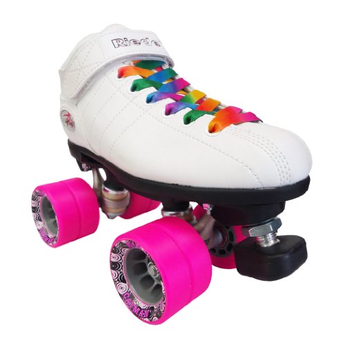 Whether you are looking for the perfect Riedell skate for indoor recreational skating or you are a roller derby skater looking for the perfect new Riedell roller derby skate, the Riedell R3 White and rainbow quad skate is the perfect skate for you. We've added rainbow laces to this package for a limited time. The rainbow laces are a one of a kind item that can't be purchase anywhere else! These Riedell R3 white speed skates feature pink Cayman wheels for the perfect look but don't let these colors fool you. These Riedell R3 white skates are about high performance as well as style. If you are looking for comfort and performance the Riedell R3 Pink skate is absolutely tops on the list of the best derby skate around for purchase today. Don't miss out on this special offer for the Riedell R3 white skate with pink wheels and pink laces! -Speed Skates Are InMen's Sizes(Ladies Go Down One Size) For Example: Ladies Shoe Size 8 = Mens Skate Size 7 / Below Size 5 Are Kids