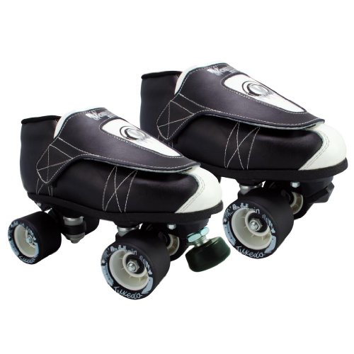 Vanilla Junior Tuxedo Black/White Kids Quad Jam Speed Roller Skates - Your Choice of Toe Stops or Jam Plugs - The #1 skate manufacturer in the world has done it again, and this time with a lower price tag! Vanilla is proud to introduce the Vanilla Junior complete skate. The boot on the Vanilla Junior skate features a strong, fully stitched rubber outsole, and super tough skate shoe lining. The newly designed frame on this package is Vanilla's first nylon frame and features a 5 degree action to increase stability with specially designed, cone shaped cushions to increase response. Vanilla toe stops or jam plugs, designed and tested by Team Vanilla for all types of skating, are the recommended toe stop choice. The ABEC-7, race spec bearings will keep you flying around the floor and have been rigorously tested by Team Vanilla to make sure they will endure the test of time. Surrounding those great bearings, are top quality, super light Backspin nylon hub wheels. - SIZING: These skates come in Men's sizes only. Ladies, please select one size down from your normal shoe size for the equivalent fit. For example; A Men's 7 equals a Ladies 8. Remember, since the skates are in Men's sizes, the men's size you select will be shipped out to you. For example; If you select a Mens 7/Ladies 8 when placing your order, a size 7 will be shipped to you. Sizes 1-3 are Unisex Kids sizes.