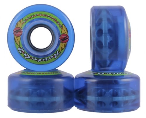 Kryptonics Route Blue Wheels - Krypto Route Outdoor 78A Skate Wheels - Kryptonics Route Blue Outdoor Skate Wheels 78A Hardness 8-Pack Your Choice of Diameter Size 62mm 65mm or 70mm Krypto Wheels 40mm Wide Roller Derby Speed Skating Replacement Wheels by Sure Grip - Made by Kryptonics USA, this skate wheel is designed for outdoor use. The high-rebound 78A formula urethane is durable and absorbs road vibration. A contoured & convex profile has made this wheel the skaters choice for over 25 years. 40mm wide.