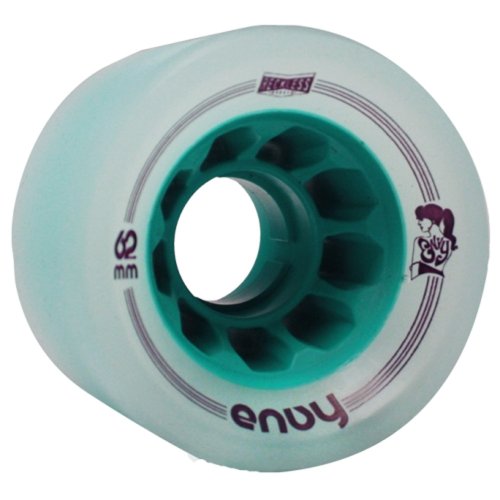 Reckless Envy Skate Wheels Size 62mm x 44mm Hybrid Hardness - Choice of 4-Pack or 8-Pack - Grippy Urethane Pusher Wheels - Roller Derby Speed Skating Replacement Wheels by Green Monster GRNMNSTR - The Perfect New Alternative to Atom Poison Wheels - The all new, RECKLESS ENVY "all purpose" hybrid skate wheel is the answer to all of your problem skating surfaces. The new Reckless Envy gives you a superior grip and roll for all kinds of surfaces, from unpolished concrete to slick wood floors and dirty sport tiles. Use Reckless Envy as pushers, or mix with the Reckless Evader and Ikon for extra traction. The Reckless Envy is a super alternative to standard outdoor wheels, providing great traction and stability on asphalt, cement, outdoor skate parks, and tennis courts. Grab your set of Reckless Envy 'all purpose' hybrid wheels and be ready for anything. Reckless Derby Wheels Envy - 62mm x 44mm. Bearings and spacers sold separately. The term 'hybrid' comes from when the first wheel with an OUTDOOR urethane was coupled with a INDOOR hub. It's also used on multiple surfaces for extra grip, or as some refer to as a 'pusher' wheel. The wheels are specifically designed for slick or ruff surfaces. The grip on just about everything, but come in the same shape as a standard wheel, not super narrow like a traditional outdoor wheel.
