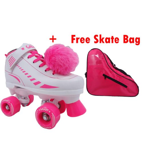 Epic Galaxy Pink Plus Kids Beginner Quad Indoor/Outdoor Roller Skates - INCLUDES FREE PINK SKATE BAG!!! - SIZING: These skates come in unisex kids sizes and run true to your normal shoe size.