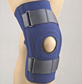 SAFE-T-SPORT Neoprene Patella Stabilizing Knee Support w/ Removable Horseshoe. Sold by each. Available in x-small thru xxx-large sizes.. . USE:. Chondromalacia Patella, Patellar Instability Infra and Subpatellar Bursitis Patellar/Pain Syndrome Lateral Tracking Patella Patellar Subluxation Osgood-Schlatter Disease Patellar Tendonitis. This stabilizer comes with a removable horseshoe that can be adjusted superiorly inferiorly medially or laterally depending on the stability needs of the knee. The horseshoe provides increased pressure around the patella for patellar tracking problems. Medial/lateral stability is provided by the spiral stays.. . SIZING:. Measure thigh circumference 4 above the center of the kneecap.. XSmall 12 - 13. Small 14 - 15. Medium 16 - 17. Large 18 - 19. XLarge 20 - 21. XXLarge 22 - 23. XXXLarge 24 - 25. . FEATURES:. **Four-way stretch for proper fit and comfort. **Sports neoprene for therapeutic warmth. **Adjustable support straps . **Horseshoe support spiral stays. **Easy slip-on style. . HOW TO APPLY:. Horseshoe should be placed where support is needed. Insert foot into knee support and slide up over the knee. For proper fit the top of the support should be positioned approximately four inches above the center of the knee. Adjust the support straps so it fits comfortably around the knee without inhibiting circulation. Secure with the easy loop lock closure.. . CARE INSTRUCTIONS: . Hand wash in cold water with mild soap before wearing. Wrap in towel to remove excess water (do not twist or wring). Air dry away from heat. Do not tumble dry. Do not bleach.. . SKUs: 37-1031SNVY 37-103SMNVY 37-103MDNVY 37-103LGNVY 37-1031LNVY 37-1032LNVY 37-1033LNVY. Color may not be as shown