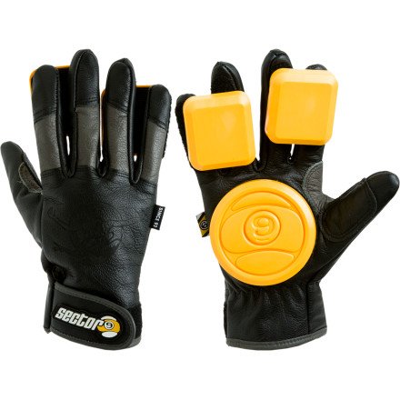 It won't be your very first time touching pavement, but this time you'll have the advantage of keeping the skin on your palm with these Sector 9 Surgeon Leather Gloves. Hard, removable polyurethane 'pucks' on the palm and fingers (three total) will make those power slides look so damn good ... oh, and they'll protect your hands too, Doctor Downhill.