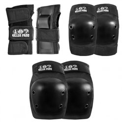 187 Killer Junior Tri Pack ,Protective Gear comes with FLY Knee,elbow and wrist guards.Same quality materials and ,craftsmanship as the 187 Pro knee pad. They are designed for excellent ,flexibility and comfort. Constructed of ultra high strength ballistic nylon and ,durable double stitching. Deep set cap gromits,super thick caps with slip on ,easy On/Off system.