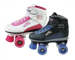 The Pacer ZTX Childrens roller skates are all purpose skates for indoors or outdoors. Features a pacer childrens boot with ankle support straps on a pacer plastic plate. Urethane wheels and sealed bearings. Comes in black size 12J-5 and White 12J-5