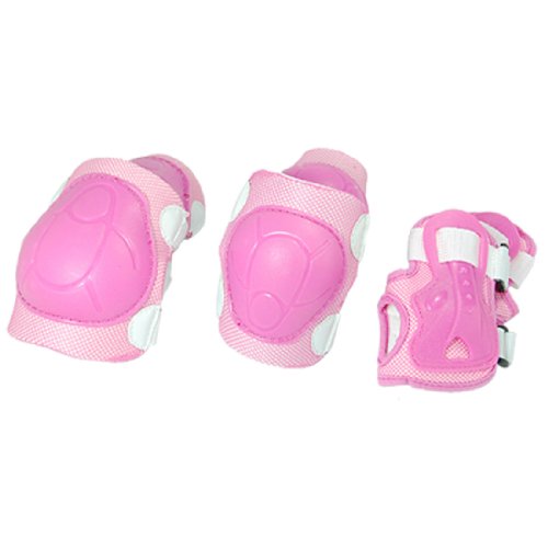This Sports Outfits protect children from hurt when in sports like Roller Skating, Cycling, Equestrian Sport etc. This Protective Outfits contains one set knee pads and one set of elbow pads which are softly inserted in side and hard covered outside, and one set of hand protective pads. Knee pad size is about 15.8 x 14.5cm/6.2" x 5.7" (L * W), elbow pads size is about 14.5 x 13.2cm/5.7" x 5.1"(L * W), hand protective pads size is about 15 x 15cm/5.9" x 5.9" (unfolded max. size). This Hurt-avoid Outfits with adjustable strap for personal fitting. This protective outfits only suitable for the children from 8-10 years old. Material of this Outfits: nylon and plastic. Color: Pink.Weight: 228g