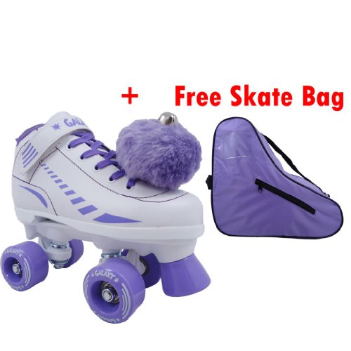 Epic Galaxy Purple Plus Kids Beginner Quad Indoor/Outdoor Roller Skates - INCLUDES FREE PURPLE SKATE BAG!!! - SIZING: These skates come in unisex kids sizes and run true to your normal shoe size.