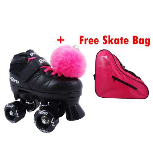 Epic Nitro Pink Plus Kids Beginner Quad Indoor/Outdoor Roller Skates - INCLUDES FREE PINK SKATE BAG!!! - SIZING: These skates come in unisex kids sizes and run true to your normal shoe size.