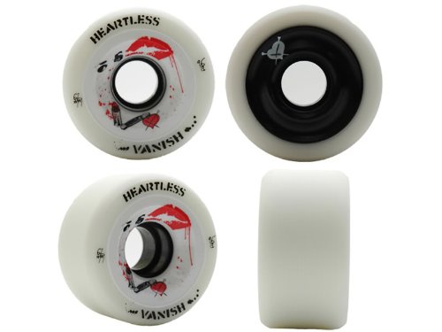 Heartless Vanish Wheels - 96A White - Roller Derby Skate Wheels - Heartless Wheels is the only wheel brand 100% designed, focused, and dedicated to the agility minded skater. Heartless Wheels feature a true hollow core hub (cap and core) and 35mm narrow profile tire, which allows skaters to turn, juke, jump, and cut with unbelievable ease. We strictly focus on those roller derby skaters who look to gain the most agility and maneuverability possible. Heartless Wheels come in 6 hardnesses to give you the best options for your style of skating and the surfaces you skate on.
