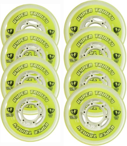 #1 IN THE WORLD OF WHEELS -HYPER HOCKEY -TRIPLE-POURED FOR GRIP & SPEED - 80mm 76a - Triple pour construction brings the power of the TRINITY to your skates. Focused grip without compromising speed and response - TRIPLE POUR CONSTRUCTION - HOCKEY SPECIFIC PROFILE - HIGHEST GRIP TO REBOUND THRUST-RATIO - EXPECT TO SEE THESE AT RETAIL HOCKEY STORES FOR $6.99 EACH - HIL SET INCLUDES 4 72MM WHEELS & 4 80MM WHEELS