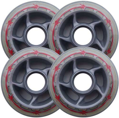 This is from the newest series of lightweight wheels. By minimizing the urethane pour and maximizing hub technology these wheels have been engineered to be the lightest on the market.Model - Barbed WireDiameter - 80mmUrethane Durometer - 80aHub - 5 Star 608 (standard)Used for - OutdoorIncluded Qty - 4