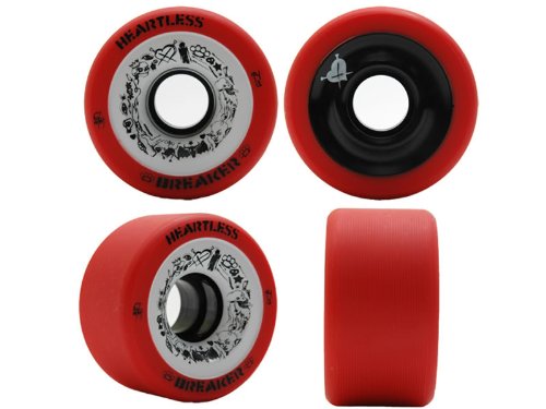 Heartless Breaker Wheels - 94A Red - Roller Derby Skate Wheels - Heartless Wheels is the only wheel brand 100% designed, focused, and dedicated to the agility minded skater. Heartless Wheels feature a true hollow core hub (cap and core) and 35mm narrow profile tire, which allows skaters to turn, juke, jump, and cut with unbelievable ease. We strictly focus on those roller derby skaters who look to gain the most agility and maneuverability possible. Heartless Wheels come in 6 hardnesses to give you the best options for your style of skating and the surfaces you skate on.