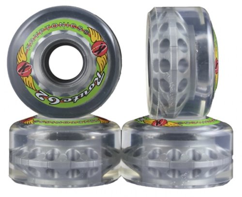 Kryptonics Route Clear Wheels - Krypto Route Outdoor 78A Skate Wheels - Kryptonics Route Clear Outdoor Skate Wheels 78A Hardness 8-Pack Your Choice of Diameter Size 62mm 65mm or 70mm Krypto Wheels 40mm Wide Roller Derby Speed Skating Replacement Wheels by Sure Grip - Made by Kryptonics USA, this skate wheel is designed for outdoor use. The high-rebound 78A formula urethane is durable and absorbs road vibration. A contoured & convex profile has made this wheel the skaters choice for over 25 years. 40mm wide.