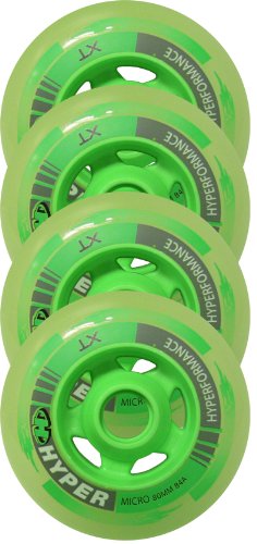 #1 IN THE WORLD OF WHEELS - THE FASTEST FITNESS AND PERFORMANCE WHEEL IN THE WORLD - HYPERFORMANCE RACING - 80mm 84a - XT MICRO CORE GREEN - WITH BEARINGS. With more podium time than any other race wheels, the Hyperformance has been proven by top competitors worldwide. Long life and superior performance make this wheel a winner year after year. ALL NEW, OPTIMIZED 5 STAR RACE HUB - SUPERIOR GRIP, SNAPPY RESPONSE, ULTRA RESILIENT COMPOUND - UNPARALLELED STRAIGHT LINE SPEED AND SURGICAL-PRECISION TURNING RESPONSE