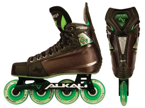 The Alkali CA7 roller hockey skate is an advanced level skate from Alkali Hockey. The CA7 is a step up from the CA5 in that it includes Surlyn quarter panels for increased rigidity and response and also a brushed Microfiber liner for better comfort and increased moisture wicking abilities. The CA7 also features an aircraft grade Aluminum chassis with Labeda Dynasty wheels and more advanced Swiss Lite bearings.