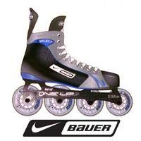 Nike Bauer's Supreme Select skate offers Supreme fit and styling to match their line of ice skates. These skates use a trueform thermoformable quarter package to allow for a custom fit. Insta form + ankle pads and an anatomical 40oz 2 piece felt tongue provide superior comfort right away.This skate uses a TUUK OneUpTM Performance Frame with Hyper Razor Edge 76A wheels and ABEC 7 608 bearings. Comes in original packaging with owners manual, tool, and Sport Mate lace puller. Recommended for shoe size US 6.0/EUR 38.5/UK 5.5, width R.