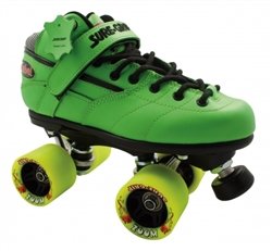 The Sure Grip Rebel Zoom ,Speed Roller Skate offers a real leather boot with power strap. The Probe plate ,is a recreation light weight plate for the beginner or advanced skater that is ,accustom to a standard 10 degree double action skate. The Zoom wheels are 62mm X 40mm Colors: ,Yellow,Blue,Pink,White,Purple,Green,Black,Red,Light Blue. Hardness 95A. ,Sure Grip Abec 7 bearings and adjustable mini stops. Men ?TMs sizes 1-14 ladies drop back one size ,for the perfect fit.
