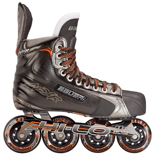 * All the distinct Vapor attributes high-end players demand packaged together with an inline chassis * Fully heat moldable ALIVE carbon composite boot construction allows the boot to form to your exact foot * X-Rib construction provides 3-Dimensional structural support and stability throughout the entire boot, and allows for faster acceleration, quicker turns, and a more confident hockey stance * Fully heat moldable internals with high-density ankle padding * Comfort wrap at boot opening alleviates abrasion high on the ankle during the break-in process and provides added comfort throughout the life of the skate * Hydra-Max 2 liner keeps the feet dry and cool while locking the heel in tight * Form-Fit 2 tongue with lace-bite channel and high density metatarsal guard is more protective and comfortable * Custom Form-Fit 2 footbed with ergonomic toe protection adds wings around the toe of the footbed to give your toes slight padding within the hard plastic toe cap * Aluminum/Glass composite outsole provides a direct link from the floor to your foot * Magnesium HI-LO Vanguard chassis features two larger wheels in the back for speed, and two smaller wheels in the front for tight performance * Labeda Addiction XXX Grip indoor wheels offer some of the best grip, speed, and durability available to date in an inline wheel * Swiss LE 608 bearings