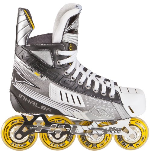 Mission Inhaler AC3 Senior Inline Hockey SkatesQuarters: Ultra-light reinforced nylon tech mesh with S.I.C.K. Quarter Ventilation Brushed nylon with Indy Foam ankle pocket inserts Tongue: 2 piece white felt + lacebite insert Mission Inhaler Footbed Composite outsole Chassis: New CNC Aluminum HI-LO 76/80mm Wheel: Rink Rat Hot Shot XXX Grip 76A Bearings: HI-LO Swiss LE 608