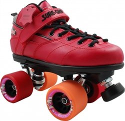 The Sure Grip Rebel with Fugitive Wheels speed skate offers a real leather boot with power strap. The Probe plate is a recreation light weight plate for the beginner or advanced skater that is accustom to a standard 10 degree double action skate. Sure Grip Fugitive wheel are cold pour urethane formulated for maximum grip and superior speed,solid core super lite nylon insert for less flex when cornering. Sizes: 62mm X 40mm 94A. Abec 7 speed bearings with adjustable mini toe stop. Mens sizes 1-14 ladies drop back one size for the perfect fit.