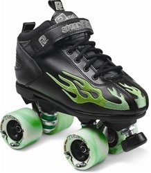 The ,Rock Flame Speed Skate offers deluxe synthetic leather uppers. Cambrelle ,lining,comfort padded collar,cushioned contour insole. Rock nylon plates and ,trucks,Sure Grip 62mm X 40mm. Twister ,wheels,62mm x 40mm x 96A Hardness. Colors white w/ Red,White w/ Green,White ,w/ Purple,Yellow w/Red,White w/Blue,White w/Black,White w/Pink,White ,w/Yellow. Mix any color combination for that custom look. Rock ABEC 5 bearings ,and mini round adjustable toe stops. Men?s Sizes 1-13 ladies drop back one size ,for the perfect fit