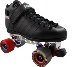 The ,Sure Grip Rebel XK4 DA45 Roller Derby Skates feature top grain leather,Box Toe ,comfort fit,Micro fiber lining,elastic tongue straps,padded ankle ,protection. The XK-4 DA plate is the newest addition to the Sure-Grip line of ,plates using the original forged plate with a special double action 45 degree ,truck makes this plate unique and allows the skater to have all 4 wheels on the ,floor longer. Newly developed cushions were added to help this plate achieve a ,rebound like no other,the quick response and superb handling is second to ,none. Adjustable pivots were also added to allow the skater to fine tune the ,action of the truck to get the most out of them at the highest level of ,competition. Twisted jump bar is included for increased strength. Backspin ,Revenge Wheels available in red (90A) and grey (95A). 62mm X 36mm. Qube 8 ball ,bearings with mini gripper toe stop. Men ?TMs sizes 1-14 ladies drop back one size ,for the perfect fit.