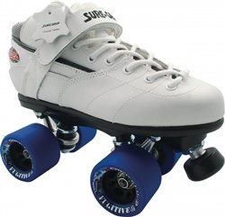 The Sure Grip Rebel with Fugitive Wheels speed skate offers a real leather boot with power strap. The Probe plate is a recreation light weight plate for the beginner or advanced skater that is accustom to a standard 10 degree double action skate. Sure Grip Fugitive wheel are cold pour urethane formulated for maximum grip and superior speed,solid core super lite nylon insert for less flex when cornering. Sizes: 62mm X 40mm 94A. Comes in Black,Blue,Green,Grey,Orange,Pink,Purple,Red,Sky Blue. Abec 7 speed bearings with adjustable mini toe stop. Mens sizes 1-11 ladies drop back one size for the perfect fit.